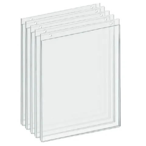 These clear acrylic wall-hanging sign holder frames are a versatile and affordable way to display everything from pictures and graphics to important documents and branding messages. Each pack includes 5 durable acrylic frames, complete with pre-drilled 0.25" diameter holes for easy hanging. The top/side-loading design allows you to quickly swap out your 8.5" x 11" inserts without even taking the frame off the wall. Forget taping things to your walls; these frame-less holders offer a sleek, modern look that complements any décor. They're perfect for showcasing business hours, advertisements, menus, gym schedules, artwork, or photos in a variety of settings, including retail shops, schools, hotels, offices, restaurants, and hospitals.