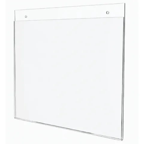 These clear acrylic wall-hanging sign holder frames are a versatile and affordable way to display everything from pictures and graphics to important documents and branding messages. Each pack includes 5 durable acrylic frames, complete with pre-drilled 0.25" diameter holes for easy hanging. The top / side-loading design allows you to quickly swap out your 17" x 11.75" inserts without even taking the frame off the wall. Forget taping things to your walls; these frame-less holders offer a sleek, modern look that complements any décor. They're perfect for showcasing business hours, advertisements, menus, gym schedules, artwork, or photos in a variety of settings, including retail shops, schools, hotels, offices, restaurants, and hospitals.