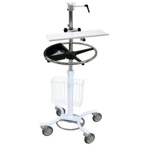 Omnimed it transport carts are constructed of heavy gauge steel and support various head assemblies for PC's, laptops and other equipment. The unit has a 4-leg base with a low center of gravity and sturdy 4 inch rubber casters. The telescoping column has Pneumatic assist and extends from 36 H to 46 H for easy individual height adjustment. Carts have an adjustable 7 W x 19 L keyboard tray, left/right sliding mouse tray, easy access wheel ring handle with one Poly tray for storage and a removable basket ( 8 H x 10 W x 4 D) affixed to the column. Accessories are available for these stands, including the extended life lithium ion battery, security Laptop head/battery assembly, C5 motion head, 10' hospital grade cord reel, mouse holder, scanner holder, Poly tray, printer tray, and medication drawer W/ self locking combo lock. These are all sold separately.