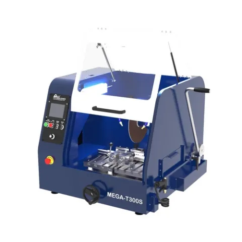 Unleash the potential of your cutting applications with the MEGA-T300S Manual Abrasive Cutter. This cutting-edge 12- inch wheel saw offers unparalleled versatility and control, transforming cutting tasks into a seamless experience. Equipped with variable speed capabilities ranging from 1500 to 3500 rpm, the MEGA-T300S provides the ultimate fine cutting control, ensuring precision and accuracy with every cut. The MEGA-T300S is built to handle a wide range of materials. Its powerful constant torque servo motor ensures consistent performance, while the twin t-slotted stainless steel tables provide stability and support during cutting operations.Its intuitive manual cutting mechanism empowers operators of all skill levels. Additionally, the included external rinse nozzle simplifies the cleaning process, enhancing efficiency and prolonging the cutter's lifespan. Elevate your cutting experience with the MEGA-T300S Manual Abrasive Cutter - where precision meets power.