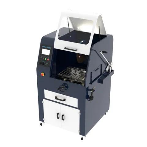 Embrace a new era of cutting excellence with the MEGA-T400A Automated Abrasive Cutter. This cutting-edge 16-inch wheel saw is engineered to revolutionize your cutting applications, delivering a level of versatility and control that elevates cutting tasks into a realm of seamless efficiency. Automated cutting operation redefines the cutting experience increasing process consistency and efficiency. Designed to effortlessly handle a diverse range of materials, the MEGA-T400A harnesses the power of a constant torque servo motor, ensuring consistent and optimal performance with every operation. Supported by twin t-slotted stainless steel tables, this automated machine maintains unwavering stability during the most intricate cutting tasks, ensuring superior results each time. Step into a future where precision is effortlessly fused with automation.
