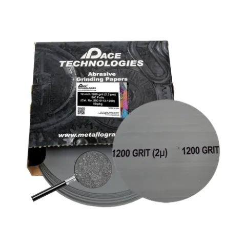 As an alternative to PSA (pressure sensitive adhesive) backed silicon carbide papers, PACE Technologies o]ers a non PSA- backed abrasive grinding foil system. Grinding foils utilize a polyester film backing which attaches to a reusable / washable silicone adhesive receiver disk. The grinding foil system offers a lower cost alternative to PSA-backed grinding papers.