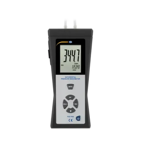 PCE-P05 is a portable handheld digital differential pressure meter or manometer used to measure differential pressure in pneumatic, compressor and pump installations, valves, tanks and heating, ventilation and air conditioning (HVAC) systems. The PCE-P05 displays min / max / average values right on the meter's screen for comparison against current measurement values.
