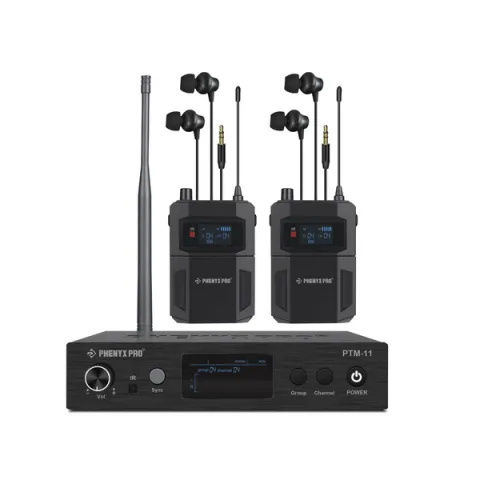 Phenyx Pro PTM-11-2B UHF Mono Wireless In-Ear Monitor System with 1 Loop Output (Two Receivers) 110V-240V 50/60 Hz 90dBm 50m/164ft