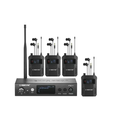 Phenyx Pro PTM-11-4B UHF Mono Wireless In-Ear Monitor System with 1 Loop Output (Four Receivers) 110V-240V 50/60 Hz 90dBm 50m/164ft