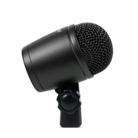 The PDM33 Bass/Kick Drum Microphone excels with a cardioid pattern for clear audio capture, minimizing background noise. Its dynamic capsule delivers powerful low-frequency performance and quick transient response, ideal for detailed sound reproduction. The microphone's sleek gray design is housed in a durable metal casing with a built-in stand mount for secure positioning. Engineered for high sound pressure and fast response, this microphone is a top choice for studio and live sound applications.