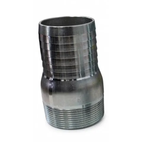 King nipples, also known as KC nipples, are widely used in fluid transfer applications where they are used to connect hose to pipe, fittings and various other components. These fittings are composed of a tapered threaded end designed to screw into a fitting with female NPT Threads (National Pipe Thread), while the other end is a barbed hose shank to designed to fit into a hose or tubing. Their tapered male thread allows for a watertight seal when threaded into the female NPT fitting, while the barbed end ensures a secure connection into hoses or tubing, when fastened with hose clamps. The stainless steel king nipple is most commonly used in the petroleum, chemical, and agriculture industries where they provide reliable connections in piping systems for all kinds of fluid transfer.