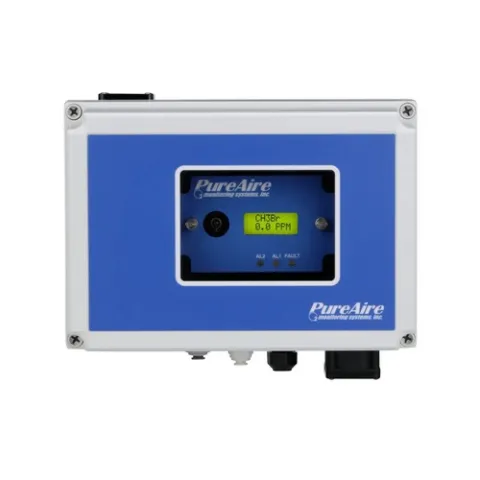 The PureAire Methyl Bromide Gas Monitor is a compact, extractive gas monitoring system that's ideal for continuously and remotely monitoring gas cabinets, process tools, scrubber systems, and other areas where maintenance access may be limited or undesirable. The Methyl Bromide Gas Monitor features a long-life pyrolizer and sample pump; this reliable hazardous gas detection system significantly reduces the labor and downtime commonly associated with gas detector maintenance and service.