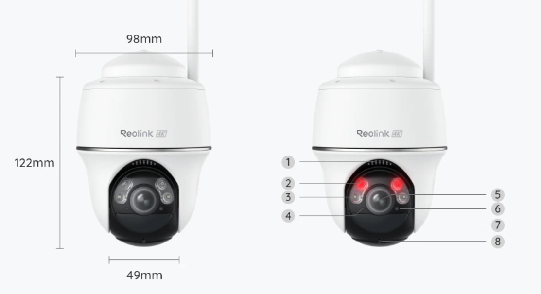 Reolink Argus PT Ultra 4K Wireless Pan & Tilt Standalone Solar/Battery Camera with Spotlights 8MP 2.4/5Ghz Wi-Fi White