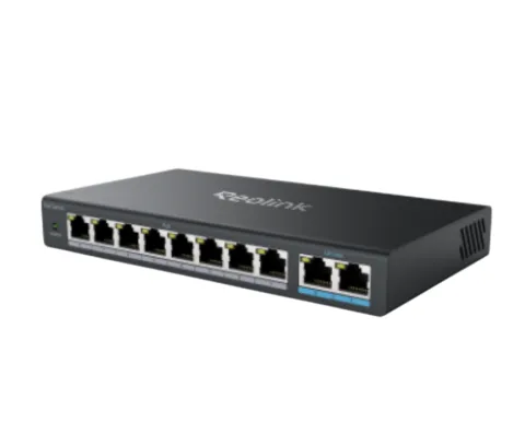 Reolink RLA-PS1 10-Port PoE Switch with 120W PoE Power Budget - 8 PoE+ Ports 2 Gigabit Ethernet Uplink 30W Per PoE Port