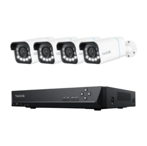 Reolink RLK8-811B4 4-Camera Bundle (White) Smart 4K PoE Camera System with 5X Zoom 8MP 8-Channel - 4x RLC-811A (White) & 1x RLN8-410