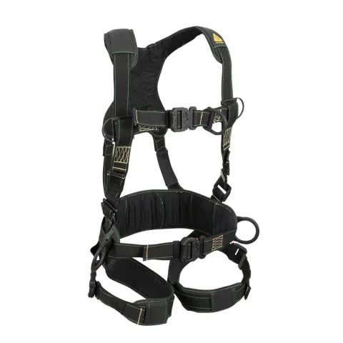 The Arc Flash Aramid Harness, built for utility and electrical workers, delivers dependable protection and all-day comfort. Designed with premium aramid ASTM-approved webbing and Nomex shoulder, waist and leg pads, the harness features either coated, corrosion-resistant dielectric hardware or standard hardware protected with a unique component backer.This durable harness provides superior protection in an arc event situation.