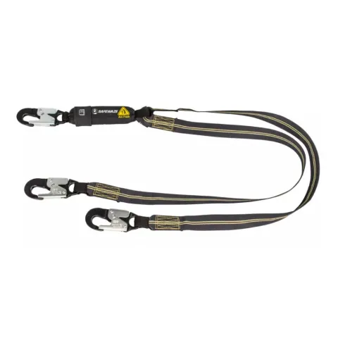 Safewaze, 020-2043, Arc Flash 6' Energy Absorbing Lanyard: Aramid, Dual Leg, Alu Snap Hooks