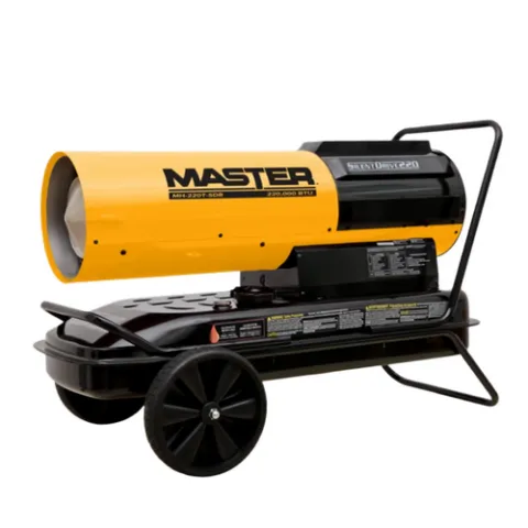 The Master® 220,000 BTU SilentDrive® kerosene/diesel forced air torpedo heater is powerful, high-BTU output, it's the quietest forced air heating solution for spaces up to 5,500 square feet. In fact, heaters with SilentDrive® technology are 50% quieter and 46% more energy efficient than equivalent conventional forced air heaters. This durable, multi-fuel heater requires no routine maintenance to keep it running smoothly. Master - built for power.