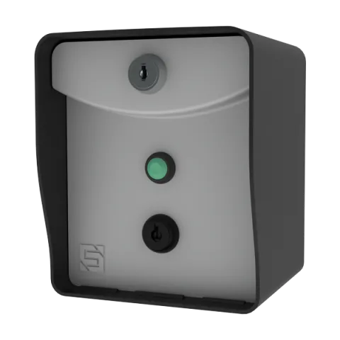 The RTE 300 from Security Brands is a 300-MHz wireless request-to-exit station housed in a durable polycarbonate enclosure. It features a lockout key switch for disabling the unit when needed. The RTE 300 works with most 300-MHz receivers.