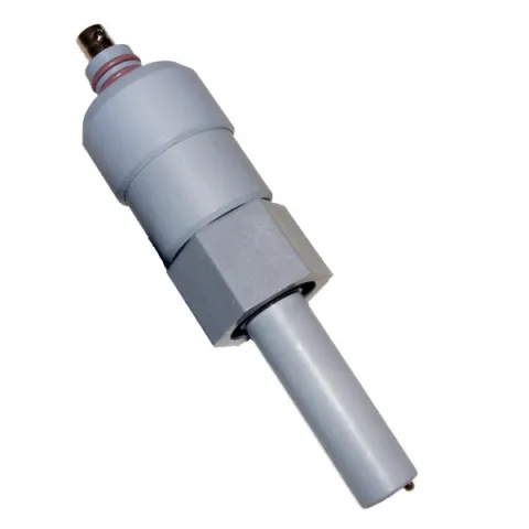 The DA series of pH and ORP electrodes are designed to solve operational problems in the presence of stray electrical voltage in solution and electrical ground loops. Installations with plastic tanks and piping are especially susceptible to ground loop problems because of the non-conductive nature of the plastic (cannot serve as earth ground). Dirty motors from pumps or mixers and even conductivity electrodes mounted near pH and ORP electrodes can leak voltage into the solution in which pH and ORP are being measured. This voltage damages the reference part of electrodes, giving erroneous readings in the application and calibration errors, leading to short service life. The DA series electrodes combat ground loop problems by utilizing a solution ground rod that is fed into an internal battery-powered (two year battery life) differential amplifier. An additional benefit of the amplifier is that it allows long cable runs of over 1000 feet.