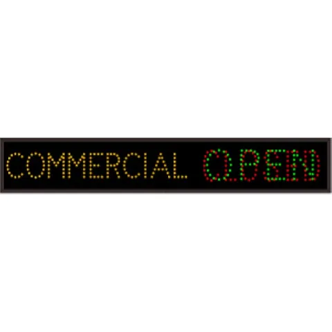 This TCL Series COMMERCIAL | OPEN | CLOSED (120-277VAC) outdoor, blank-out sign is designed with super bright LEDs and a contrasting face; we guarantee it's readable in direct sunlight. The sign message is formed by visible LEDs on a black sign face and is designed to illuminate the message(s) when turned on and blank out or extinguish the message when off.