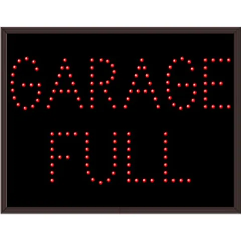 This TCL Series GARAGE FULL (120-277VAC) outdoor, blank-out sign is designed with super bright LEDs and a contrasting face; we guarantee it's readable in direct sunlight. The sign message is formed by visible LEDs on a black sign face and is designed to illuminate the message(s) when turned on and blank out or extinguish the message when off.