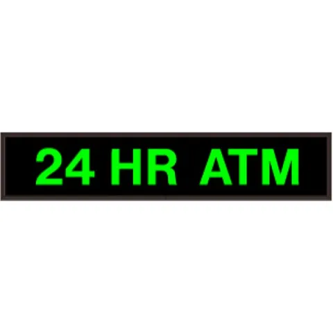 This PHX Series 24 HR ATM outdoor, blankout sign is designed with high-intensity, LED reflected, backlit illumination and a block letter-style message face. The sign message illuminates when turned on and blanks out or extinguishes when off. PHX Series signs are guaranteed readable in direct sunlight.