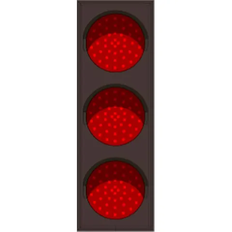 This TCL Series Indicator Dots, Triple with Hoods, Vertical, 5 in dia, Red - Red - Red outdoor, blank-out sign is designed with super bright LEDs and a contrasting face; we guarantee it's readable in direct sunlight. The sign message is formed by visible LEDs on a black sign face and is designed to illuminate the message(s) when turned on and blank out or extinguish the message when off.
