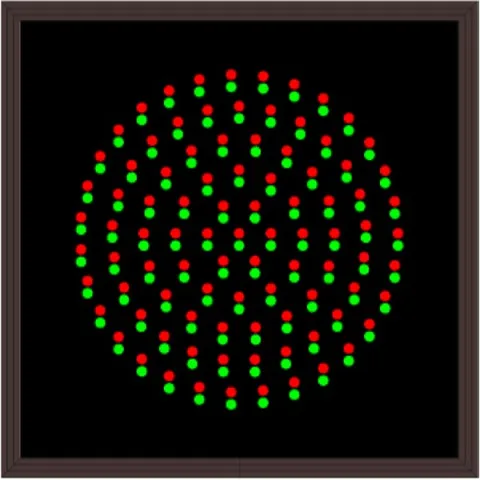 This TCL Series Indicator Dot, Single, 8 in dia, Red - Green. Outdoor, blank-out sign is designed with super bright LEDs and a contrasting face; we guarantee it's readable in direct sunlight. The sign message is formed by visible LEDs on a black sign face and is designed to illuminate the message(s) when turned on and blank out or extinguish the message when off.