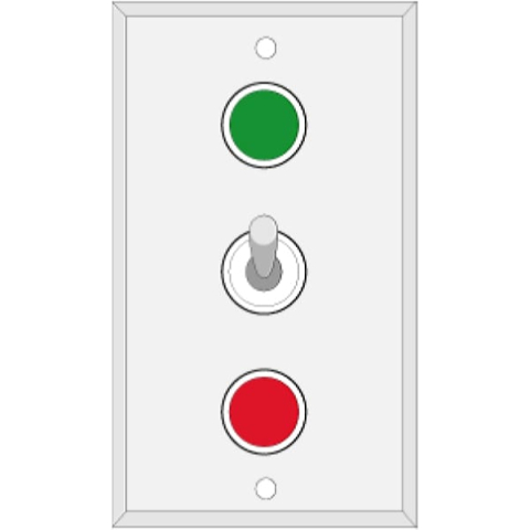Single Gang Switch assembly with indicator lights and brushed, stainless-steel cover plate. (1) 3-position DPDT On/Off/On switch(es). Electrical box not included. Voltage: 120VAC