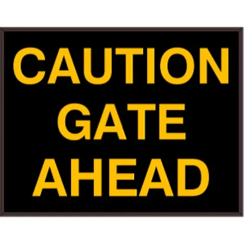 This PHX Series CAUTION GATE AHEAD outdoor, blankout sign is designed with high-intensity, LED reflected, backlit illumination and a block letter-style message face. The sign message illuminates when turned on and blanks out or extinguishes when off. PHX Series signs are guaranteed readable in direct sunlight.