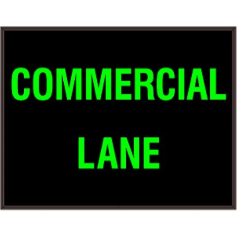 This PHX Series COMMERCIAL LANE outdoor, blankout sign is designed with high-intensity, LED reflected, backlit illumination and a block letter-style message face. The sign message illuminates when turned on and blanks out or extinguishes when off. PHX Series signs are guaranteed readable in direct sunlight.