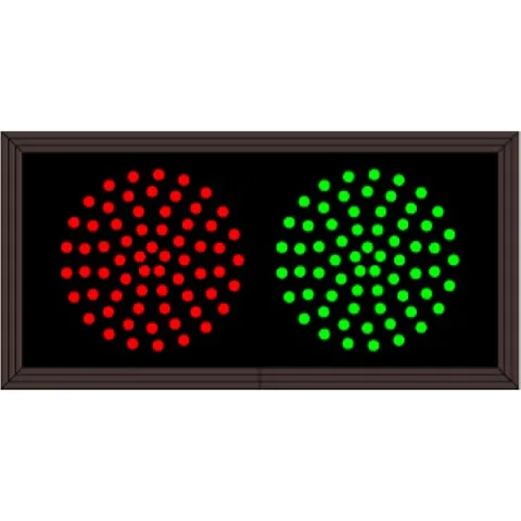 This TCL Series Indicator Dots, Double, Horizontal, 4 in dia, Red-Green (120-277VAC) outdoor, blank-out sign is designed with super bright LEDs and a contrasting face; we guarantee it's readable in direct sunlight. The sign message is formed by visible LEDs on a black sign face and is designed to illuminate the message(s) when turned on and blank out or extinguish the message when off.