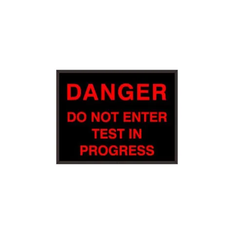 This SBL Series DANGER DO NOT ENTER TEST IN PROGRESS indoor, blankout, LED backlit sign is designed with a matrix of energy efficient LEDs illuminating a block-style message. The sign features blankout technology that only displays the sign message when illuminated. It is engineered with a solid-state circuit board and switch-mode power supply for maximum LED life. The cabinet is constructed of corrosion-resistant, extruded all-weather frame and ships with our Lift'N Shift back for wall mounting. Ceiling, post and wall-projection mountings are available. Standard cabinet finish is Duranodic Bronze; custom paint finishes are available. Sign can be controlled by a switch or third-party relay. Control switch can be purchased separately. UL/cUL Listed.