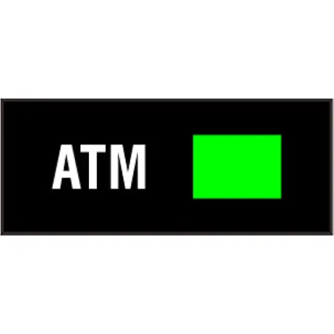 This PHX Series ATM | Indicator Square outdoor, blankout sign is designed with high-intensity, LED reflected, backlit illumination and a block letter-style message face. The sign message illuminates when turned on and blanks out or extinguishes when off. PHX Series signs are guaranteed readable in direct sunlight.