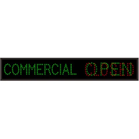 This TCL Series COMMERCIAL | OPEN | CLOSED outdoor, blank-out sign is designed with super bright LEDs and a contrasting face; we guarantee it's readable in direct sunlight. The sign message is formed by visible LEDs on a black sign face and is designed to illuminate the message(s) when turned on and blank out or extinguish the message when off.