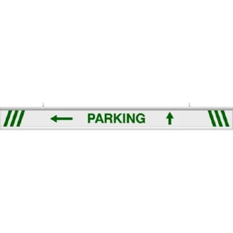The IBAR-C Series clearance bar is a single-piece, 7" x 2.5" extruded aluminum system. Includes Easyglide Adjustable Eyebolts for top mounting. Painted white and displays your required message in factory-applied, high-performance green reflective vinyl.