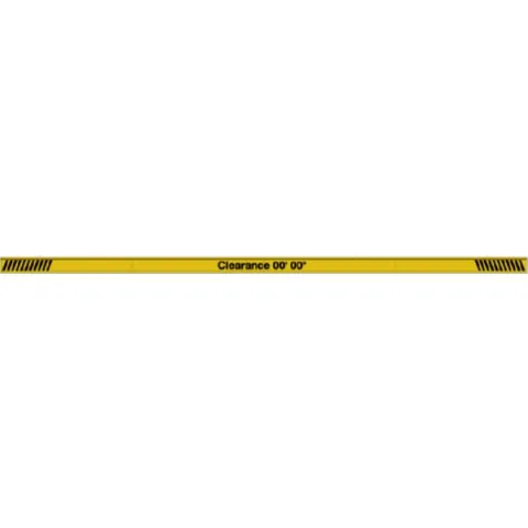 The IBAR-M Series clearance bar is a multi-piece, modular, 7" x 2.5" extruded aluminum system. Includes Easyglide Adjustable Eyebolts for top mounting for each modular section. Painted traffic yellow and displays your required message in factory-applied, high-performance reflective vinyl (Black reflective vinyl is standard). Custom paint colors and graphics are available upon request.