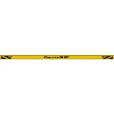 The IBAR-C Series clearance bar is a single-piece, 7" x 2.5" extruded aluminum system. Includes Easyglide Adjustable Eyebolts for top mounting. Painted traffic yellow and displays your required message in factory-applied, high-performance reflective vinyl (Black reflective vinyl is standard). Custom paint colors and graphics are available upon request.