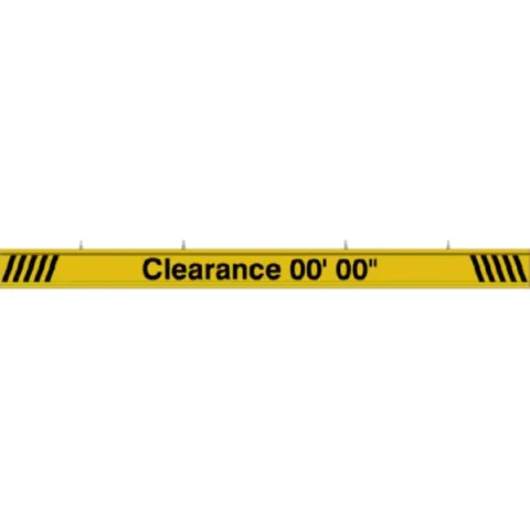 The I-Bar Series clearance bar is a multi-piece, modular, 7" x 2.5" extruded all aluminum system. Includes (2) Easyglide Adjustable Eyebolts for each modular section. Painted traffic yellow and displays your required message in factory applied, high performance reflective vinyl (Black reflective vinyl is standard). Custom paint colors and graphics available upon request.