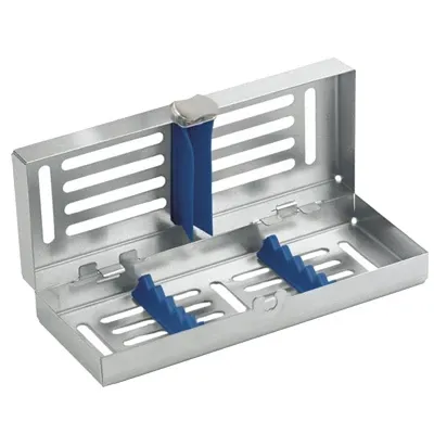 Sklar's® Instrument Cassettes are used for cleaning, storage and sterilization. The silicone supports are repositionable to assist in arranging various instruments. The cassettes are available with a hinged or detachable lid. This product is a small cassette with a detachable lid and can hold approximately 5 instruments.