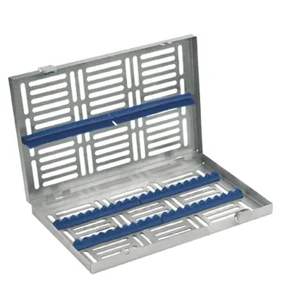 Sklar's® Instrument Cassettes are used for cleaning, storage and sterilization. The silicone supports are repositionable to assist in arranging various instruments. The cassettes are available with a hinged or detachable lid. This product is a large cassette with a hinged lid and can hold approximately 20 instruments.