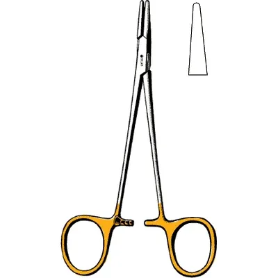 Sklar® TC Halsey Needle Holders are ratcheted, finger ring instruments used for holding small needles for suturing, most commonly during plastic surgery and procedures with delicate tissue, such as dermatology. They are available with smooth or delicately serrated jaws. Smooth jaws will cause the least damage to the needle; however, serrated jaws hold the needle more tightly. Physician preference typically determines the type of working surface utilized. Sklar permanently bonds tungsten carbide inserts to the instrument, which maximizes control and precision. This product is straight with smooth tips and a length of 5 inches.