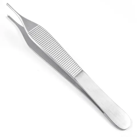 Sklarlite™ Adson Tissue Forceps are for holding and manipulating delicate tissues. These forceps have a wide, flat thumb grasp area that is commonly serrated. The jaws are short and the tips are narrow. Sklarlite™ instruments are a lighter version of standard Sklar instruments. A unique manufacturing process developed by Sklar shaves microns off standard and delicate pattern instruments while maintaining structural integrity and durability. This lightweight modification provides the surgeon with greater control and less fatigue. This product is straight with smooth jaws, 1 X 2 teeth, and a length of 4-3/4 inches.