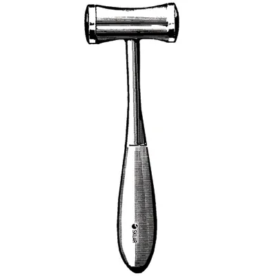 Sklar's® Lucae bone mallet is an orthopedic instrument used to drive chisels, gouges or osteotomes for scraping and cutting bone. The head profile of the Lucae is the dumbell or bow shape similar to the Hajek style. The Lucae is lighter weight than Bergmann, Kirk, Crane and Gerzog, with an average face diameter for the head. This product is available in two different lengths, weights and face diameter sizes