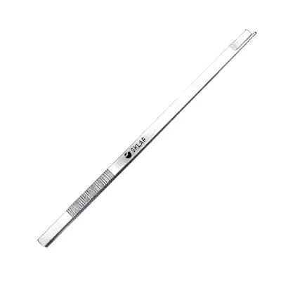 Sklar's® Anderson-Neivert Osteotome is an ENT instrument commonly used in plastic surgery procedures such as rhinoplasty. It is used to chip away small pieces of bone in small areas. The tip of this product is 7mm wide and straight. A portion of the tip extends beyond the chisel part of the osteotome and acts as a guard to protect surrounding tissue. The overall length is 8 inches.