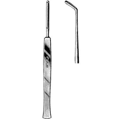 Sklar's® Joseph Button End Knife is an ENT/plastic surgery instrument most commonly used for dissecting and trimming nasal tissue. It is often used in rhinoplasty and septoplasty procedures. The small button tip of this instrument is used to separate nasal mucosa from the nasal cartilage. This product is angled with a length of 6 inches.