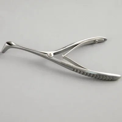 Sklar's® Beckman Pediatric Nasal Speculum is a double spring, plier handle instrument used primarily for retracting the nasal wall in order to obtain greater access to the nasal cavity for examination or procedures. It may also be used in the ear. This speculum has a straight shaft which allows the user an improved view not obstructed by the speculum handle. This product has an overall length of 5 inches.