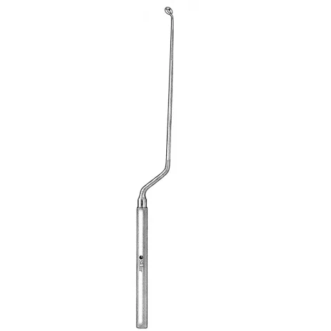 Sklar's Hardy Pituitary Curette is a neurosurgical instrument used for pituitary tumor removal. It features a bayonet handle and is available with a fenestrated tip, angled upward, downward, left or right.