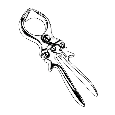 Sklar's® Emasculatome with a Cord Stop is a veterinary instrument used for castrating primarily lambs and goats. The clamping tips crush the spermatic cords but do not cut the skin or cause damage to internal vessels. This product has an overall length of 9 inches.