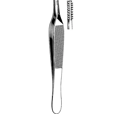 Merit™ Adson-Brown Tissue forceps are for holding and manipulating delicate tissues. These forceps have a wide, flat thumb grasp area that is commonly serrated. The jaws are short and the tips are narrow. They are similar to standard Adson forceps, however, Adson-Brown forceps feature multiple rows of teeth, typically 7x7 or 9x9. They are used to grasp delicate tissue, most commonly in plastic surgery. Merit™ instruments are Sklar's office-grade line of products and most commonly utilized for routine and in-office minor procedures. These cost effective, high quality instruments are crafted from Pakistan steel and come with a 10 year guarantee. Merit™ instruments deliver an economical solution for physicians and practices that require quality, durable instruments. This product is straight with 9x9 teeth, and a length of 4-3/4 inches.