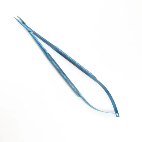 Sklar's® titanium Castroviejo needle holder is used suturing during micro surgery - including ophthalmic and cardiothoracic. It has a diamond-like coated jaw of fine tungsten carbide dust to ensure a firm grip on the needle. The instrument is available in two tip sizes for different sutures. The handle is round with or without ratchet. The product is available in three different lengths, curved or straight.