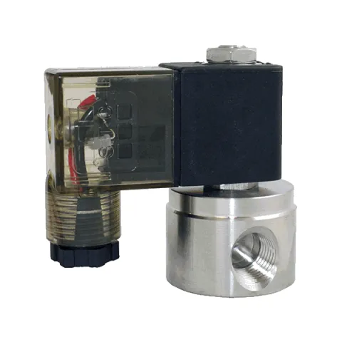 1/8" NPT Direct Acting 3 Way Normally Closed Stainless Steel Solenoid Valve (24VDC DIN) 1.2mm Orifice with NBR Seals 9mm Armature