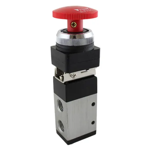 The MSV-98322EB is a manual pneumatic directional valve with a three-way operation & three ports (P = Pressure, A = Outlet, EA = Exhaust for port A). Three-way, two-position valves are generally used to fully extend a single acting (spring return) cylinder, or in applications with similar operation. With the detented emergency stop button, air can quickly be applied (and remain applied) to the outlet port until the button is reset.